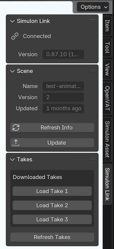 After installing the Simulon Link plugin and opening your locally editable scene you will be able to access the Simulon Link tab.&#x20;