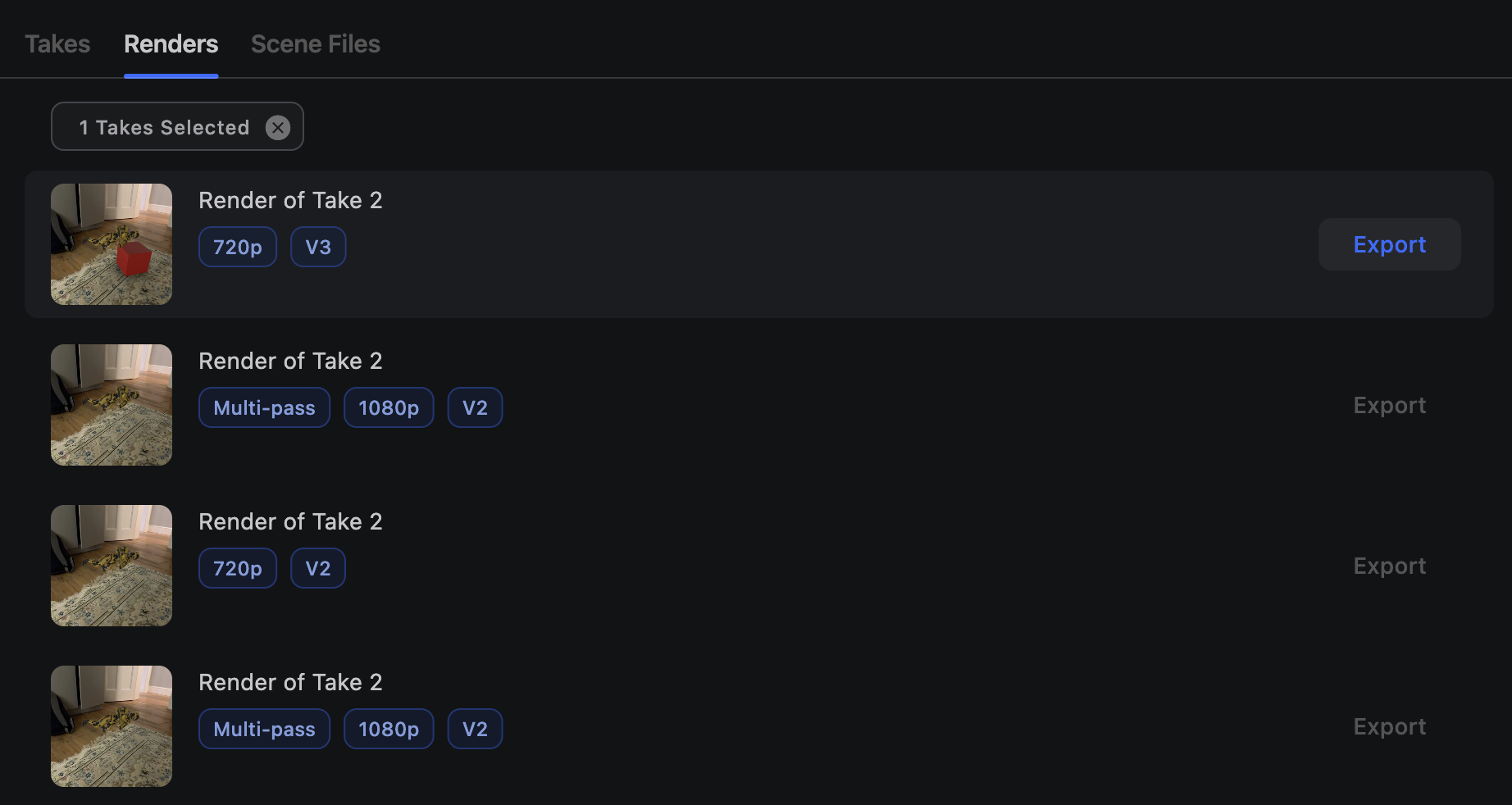 &#x20;You can then simply rerender the take you'd like and it will render with your scene changes.